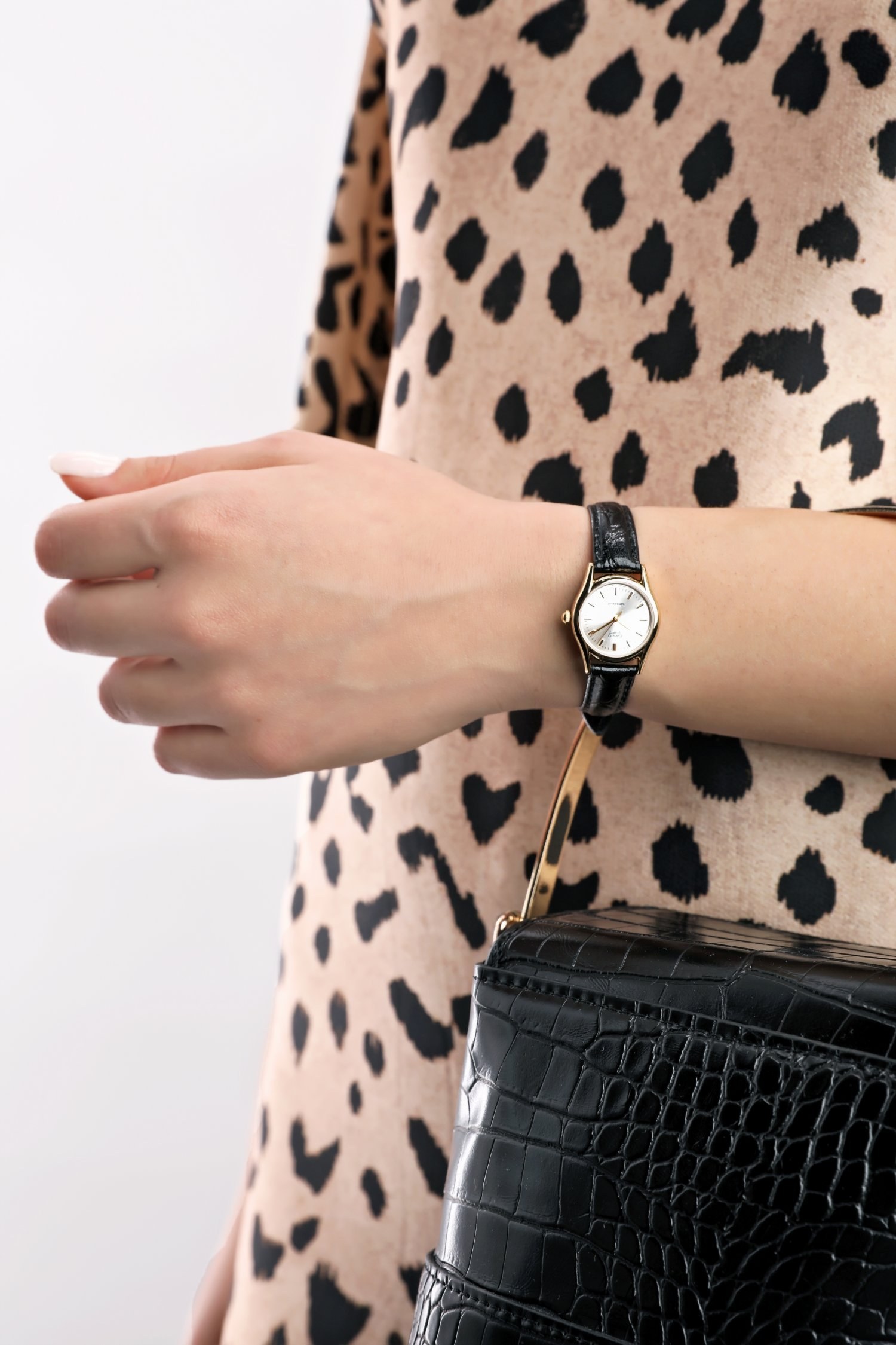 مناسب برایخانم هاابعاد ساعت29*23مورد استفادهرسمی - روزمرهجنس قاباستیلجنس بندچرمرنگ صفحهسفیدرنگ قابطلاییرنگ بندمشکی
